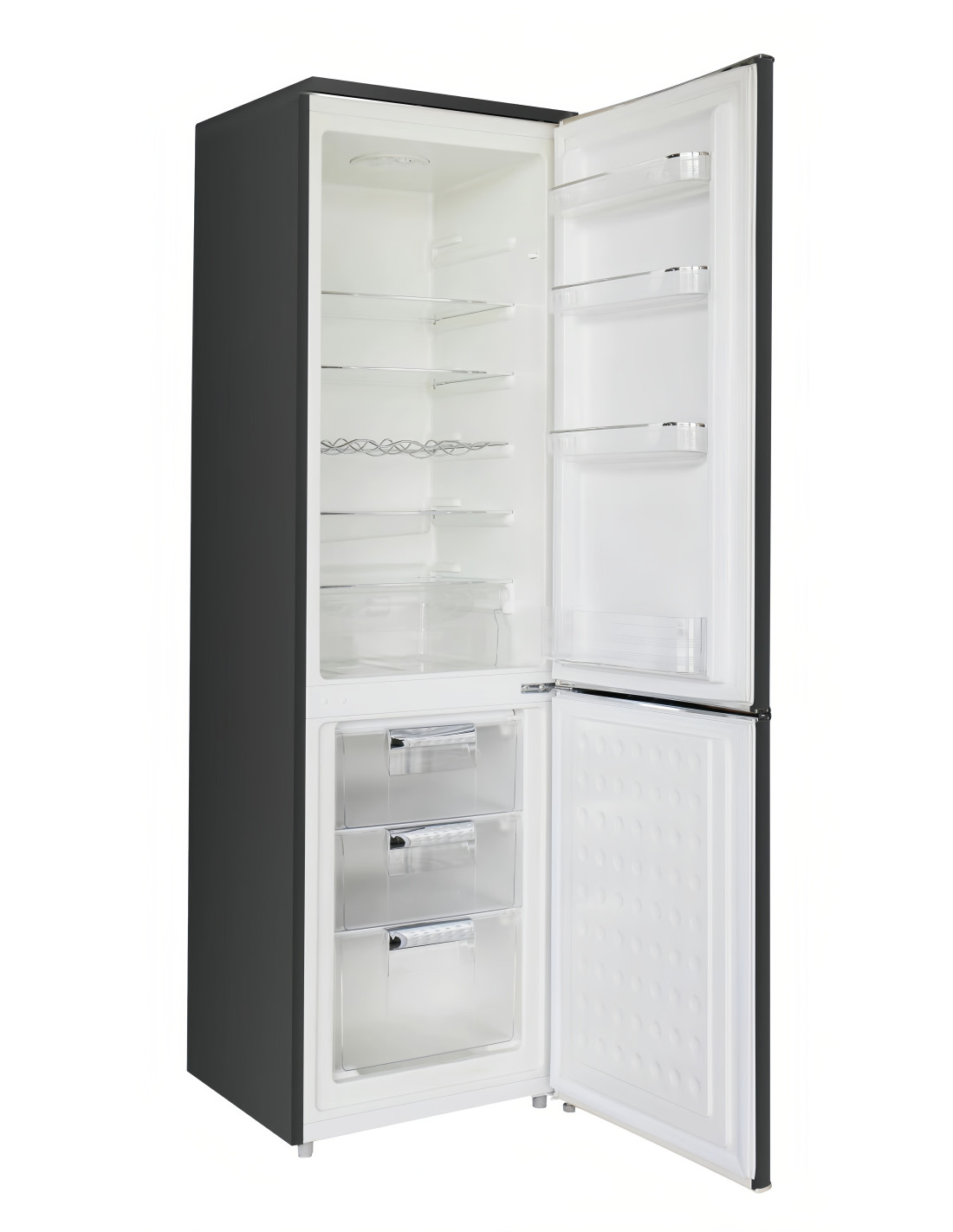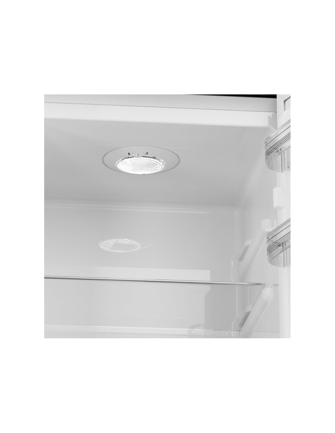 - Incluye cajon para productos frescos junto a un estante botellero. Tiene una altura de 182 cm, con un ancho de 54,5 cm y una profundidad de 56,5 cm, lo que ofrece una capacidad neta de 250 litros y una eficiencia energética E.