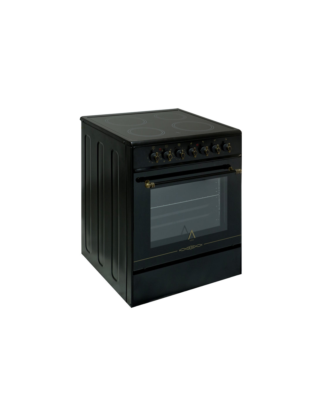 ALPHA Cocina Eléctrica VULCANO ZEUS GOLD Rustica Oro, Vitrocerámica, Horno 8 Funciones, Cristal Extraíble, **Alta Gama**